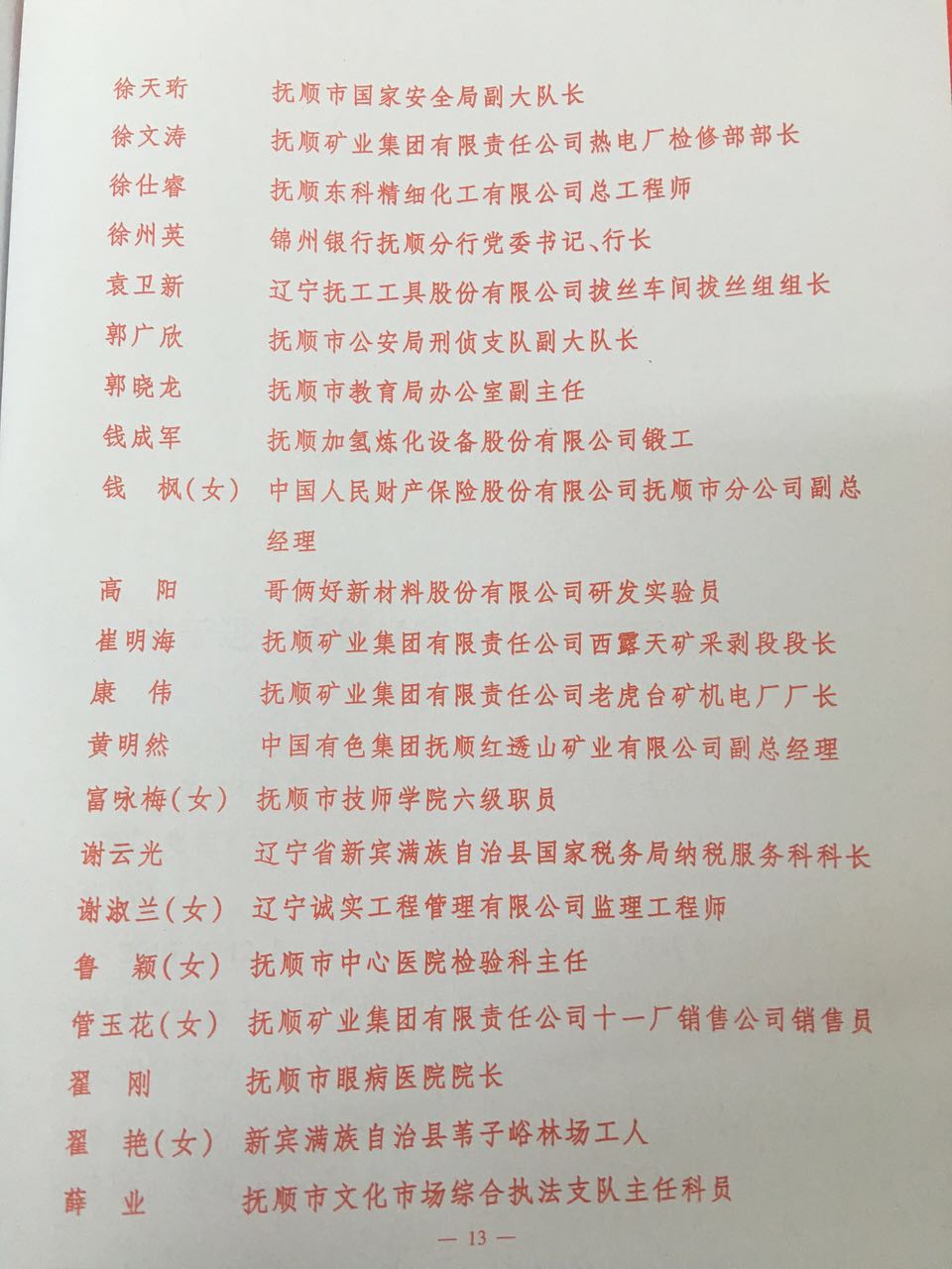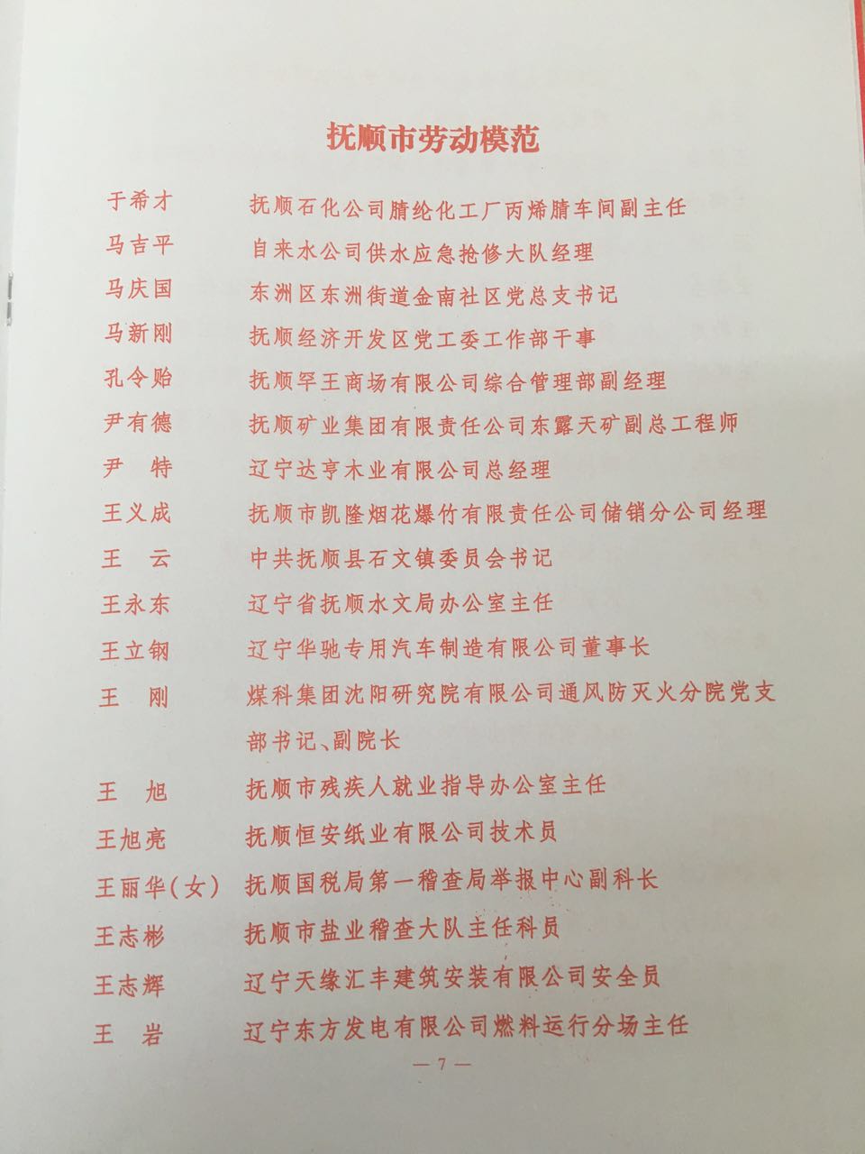 熱烈慶祝我公司謝淑蘭同志榮獲撫順市勞動模范稱號