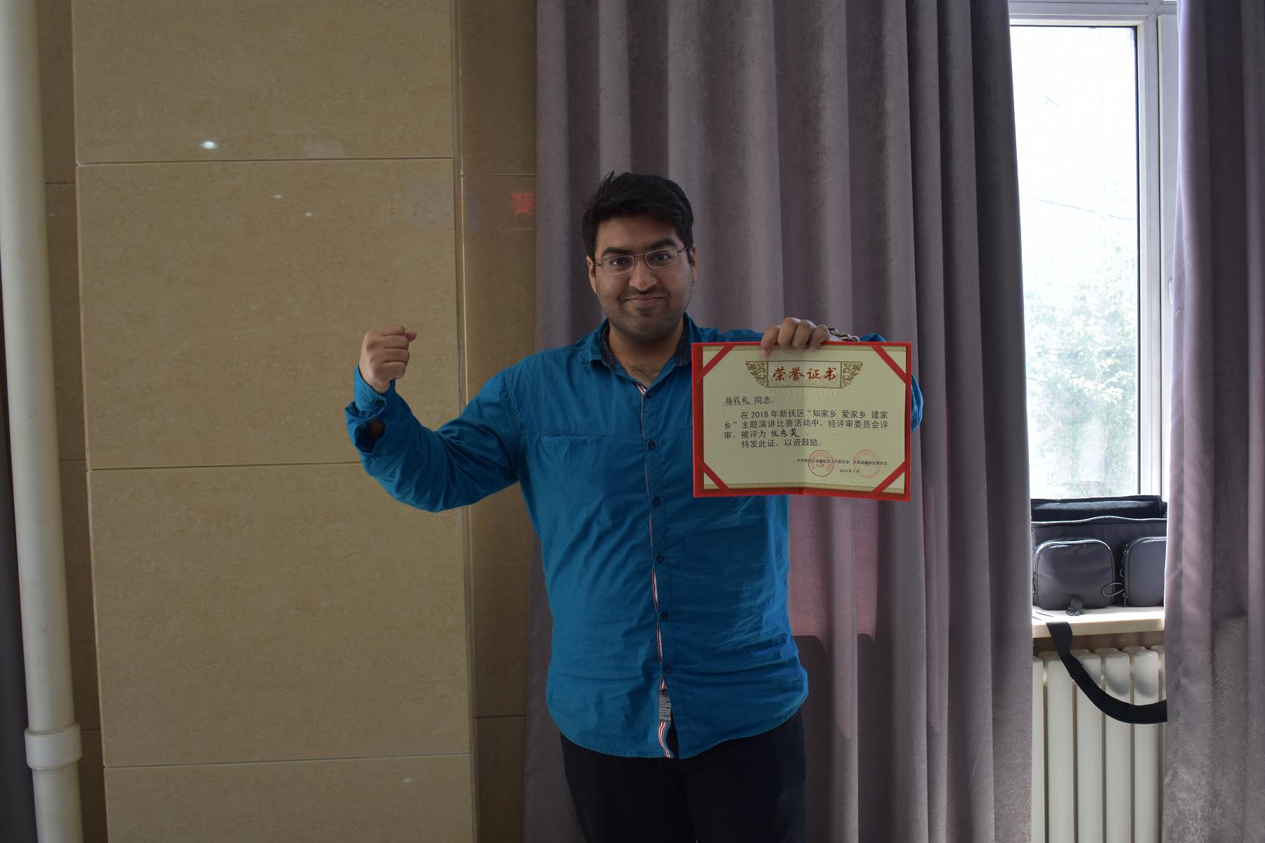 活動(dòng)得到了全區(qū)機(jī)關(guān)、企事業(yè)單位廣大青年職工的積極響應(yīng),我公司選送了實(shí)習(xí)員工福載禮,一位來(lái)自巴基斯坦的留學(xué)生參加了比賽。經(jīng)過(guò)預(yù)賽的激烈角逐,福載禮與其他13名選手從初賽中脫穎而出,進(jìn)入決賽。他們們從不同角度和不同層面闡述了對(duì)撫順的熱愛(ài)之情。他們用如火的激情表達(dá)投身家鄉(xiāng)建設(shè)的決心;他們用不忘初心的使命踐行新時(shí)代新青年的擔(dān)當(dāng)。他們深情地講述一個(gè)個(gè)生動(dòng)真實(shí)的故事,對(duì)“知家鄉(xiāng) 愛(ài)家鄉(xiāng) 建家鄉(xiāng)”做出最好的詮釋。他們的精彩演講不時(shí)贏得評(píng)委和現(xiàn)場(chǎng)觀眾的陣陣掌聲。