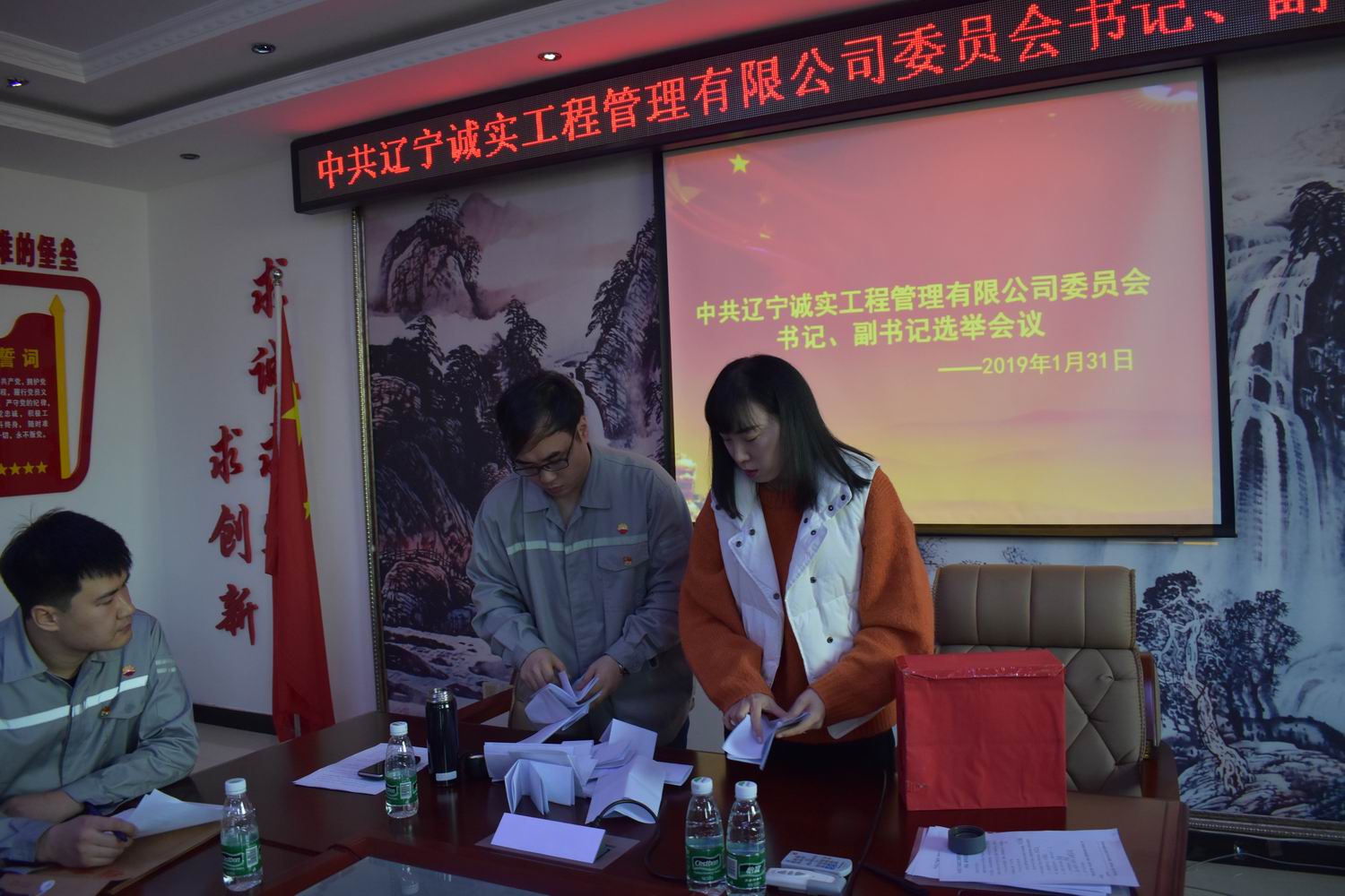 會上首先由張冠楠同志宣讀了新工委字【2019】1號文件《關(guān)于同意中共遼寧誠實工程管理有限公司委員會選舉書記、副書記的批復(fù)》,接著趙紫伊同志向大會介紹書記、副書記候選人情況并通過,鄧戎龍同志宣讀選舉辦法并通過,大會通過了尋藍春同志為本次選舉工作的監(jiān)票人,鄧戎龍、趙紫伊兩位同志為本次選舉工作的計票人,在監(jiān)票人尋藍春的組織下,參會黨員差額選舉產(chǎn)生了中共遼寧誠實工程管理有限公司新的書記和副書記。選舉結(jié)果:趙劍平為黨委書記,任潤東為黨委副書記。目前新的黨委由5名委員組成,分別是任潤東、張冠楠(女)、趙劍平、馬駿、劉興善。其中設(shè)書記1名,副書記1名。老黨委書記講話,新、老兩位書記進行工作交接儀式,最后新黨委書記在大會上作了表態(tài)發(fā)言。