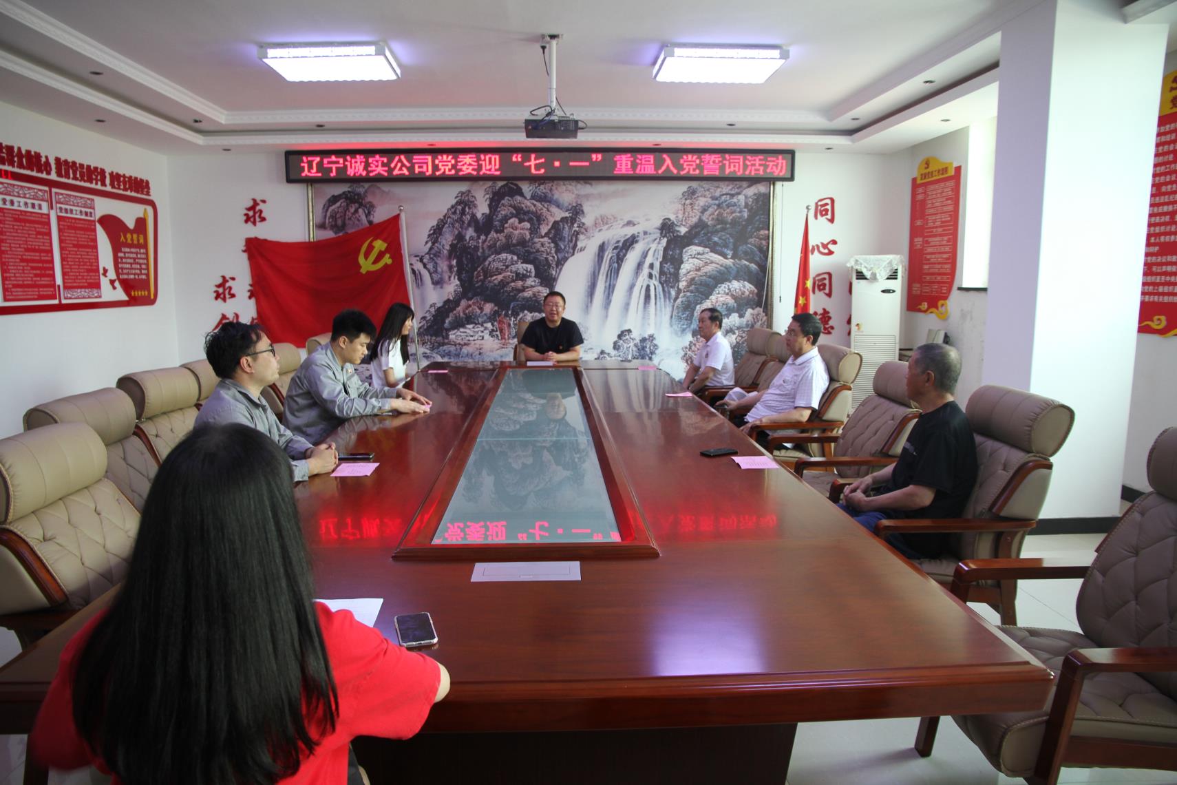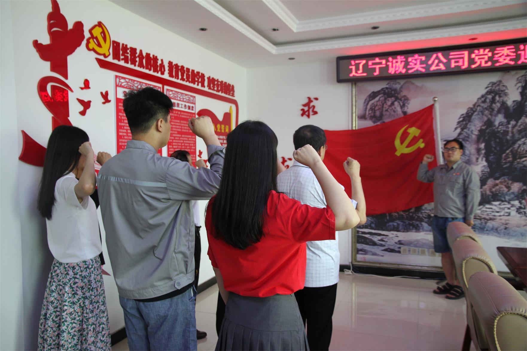 黨員們在公司一樓的黨建活動基地面對著黨旗重溫入黨誓詞,重憶入黨初心,牢記宗旨,錘煉黨性,堅(jiān)定信念,在錚錚誓言中再燃奮斗激情。