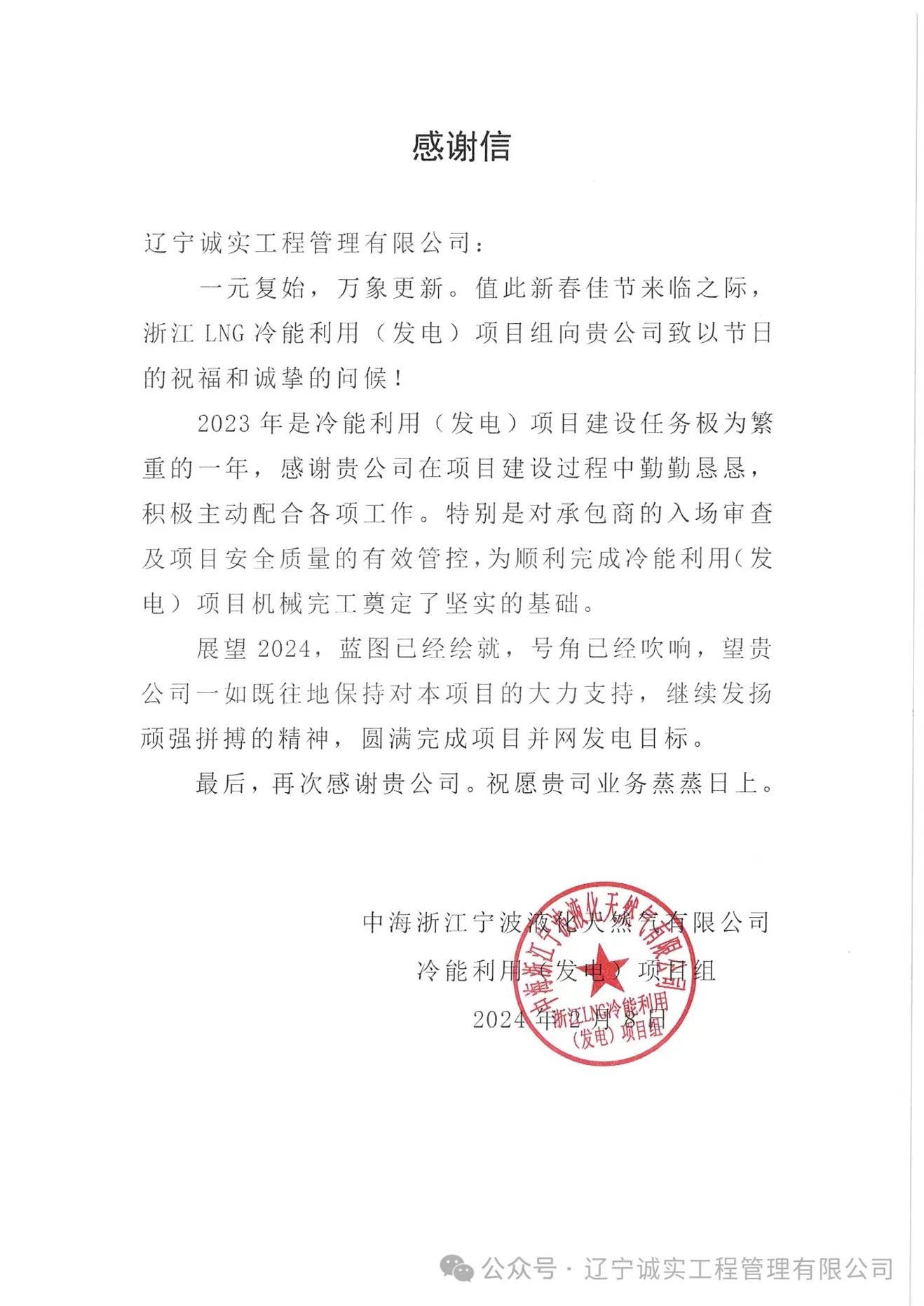 遼寧誠實2023年度承擔(dān)江蘇液化天然氣質(zhì)量安全環(huán)保安全監(jiān)督工作,該項目在總監(jiān)張東偉的帶領(lǐng)下,全體成員勠力同心,克服島上工作環(huán)境不利等因素的干擾,用一絲不茍的工作態(tài)度出色地完成了本年度安全監(jiān)督工作,確保了各主要工序工作的安全、順利進行。全年共發(fā)現(xiàn)安全問題878個,下發(fā)整改通知單86份,整改率達98%。另外,與生產(chǎn)設(shè)備單位協(xié)作,對承包商的安全設(shè)備設(shè)施及其附件進行定期或不定期的檢查,共計查出相關(guān)設(shè)備問題170余項,整改率達到100%,從而保證了工程項目高效安全的順利完成。充分展現(xiàn)了遼寧誠實大企的責(zé)任與擔(dān)當(dāng),為企業(yè)贏得了榮譽。由于項目人員出色的表現(xiàn),公司于2024年1月12日,收到了建設(shè)單位質(zhì)量安全環(huán)保部的《表揚信》。
