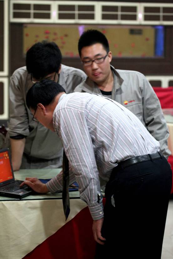 跳棋獲勝者徐峰領(lǐng)取獎品